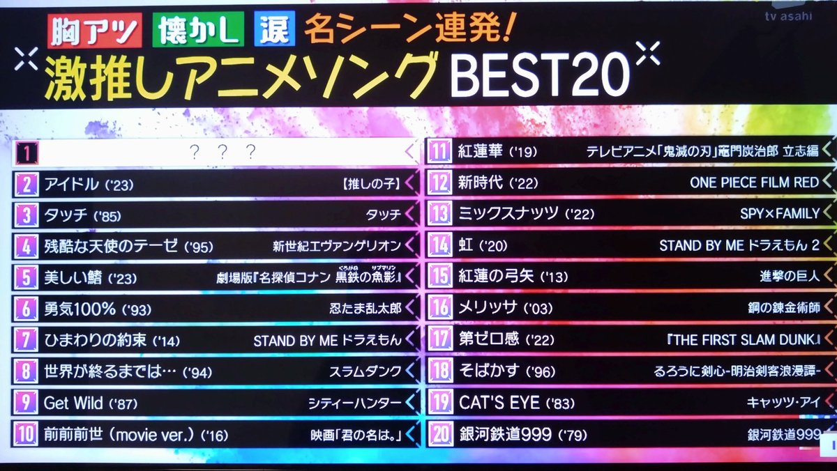 【Mステ】1万人が選ぶアニソンベスト20がゴミランキングと話題に